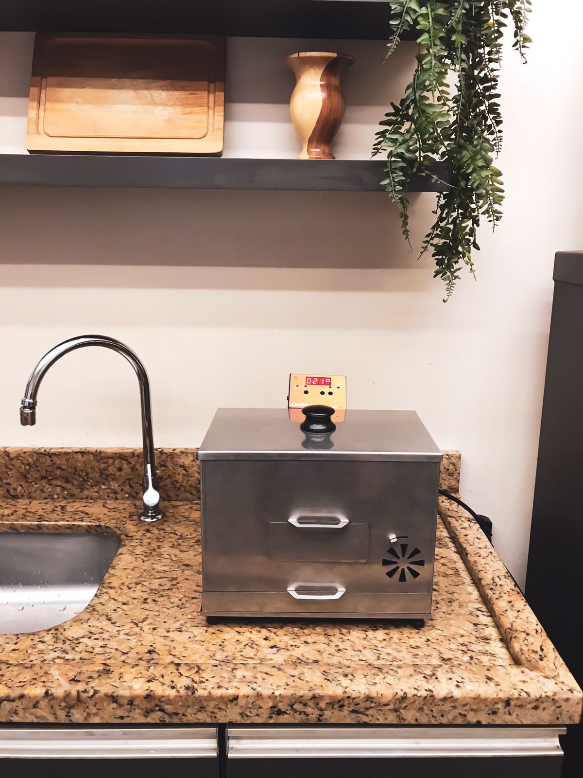 O defumador elétrico Cálido I foi concebido com o propósito de possibilitar que mais pessoas possam desfrutar do maravilhoso tempero da fumaça. Seu sistema construtivo e tamanho reduzido permitem utilizá-lo sobre pias de cozinha, churrasqueiras, lareiras, áreas de serviço ou qualquer ambiente aberto. Já o controlador digital oferece recursos únicos que possibilitam automatizar o processo, tornando a defumação extremamente fácil e divertida. Você pode selecionar a forma de finalização de uma defumação, podendo ser por tempo ou pela temperatura medida pela sonda culinária, garantindo segurança alimentar e padronização.