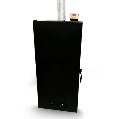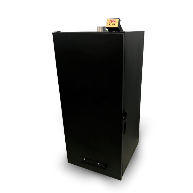 • Produção de fumaça pelo exclusivo sistema de pirólise de tocos ou chips com temperatura controlada ou combustão de serragem